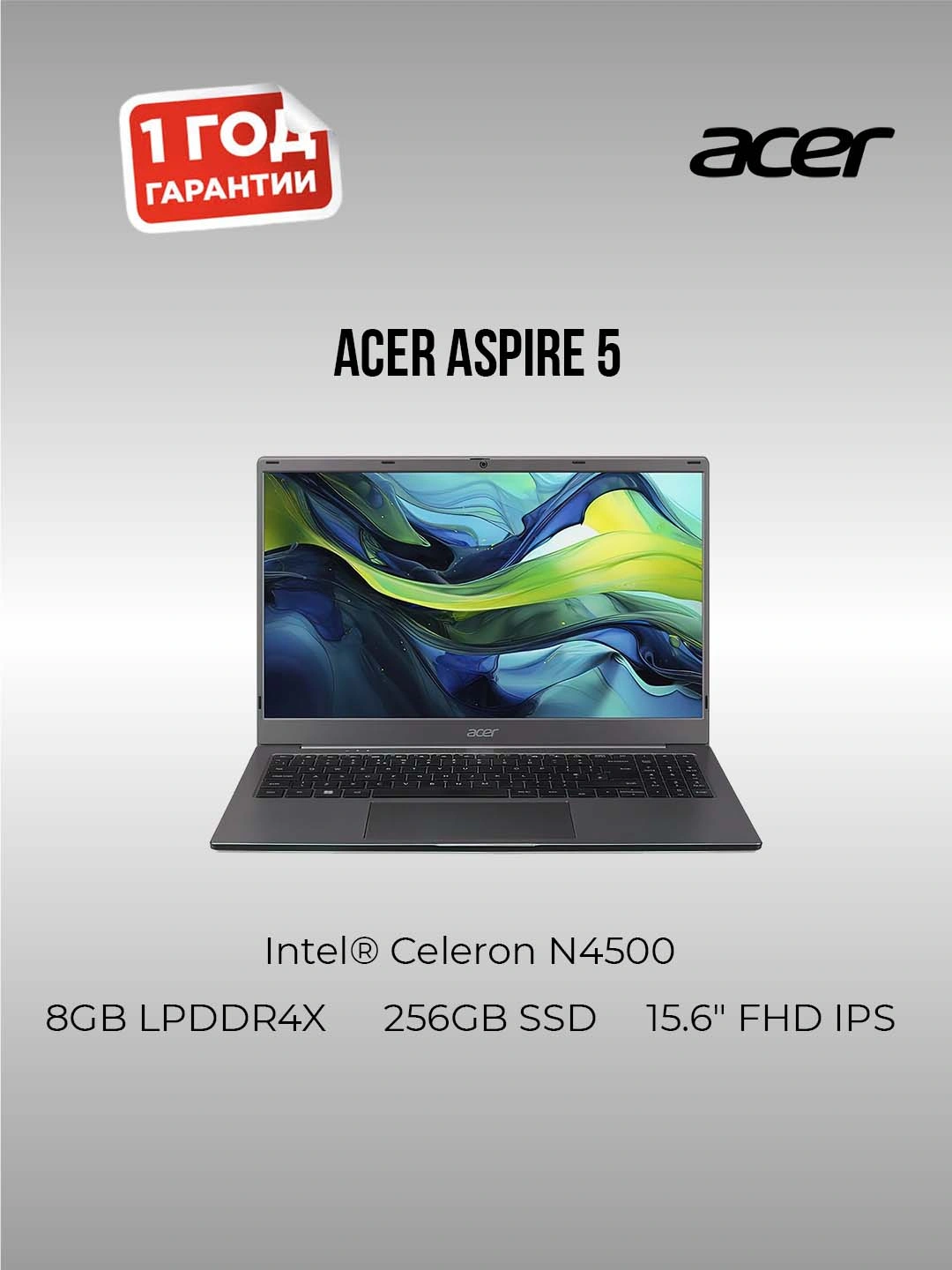 Ноутбук Acer Aspire Lite – Intel Celeron N4500, 15.6" FHD IPS, 8GB, 256GB SSD + Windows 11 за 3710000 сум со скидкой 12%. Uzum Market