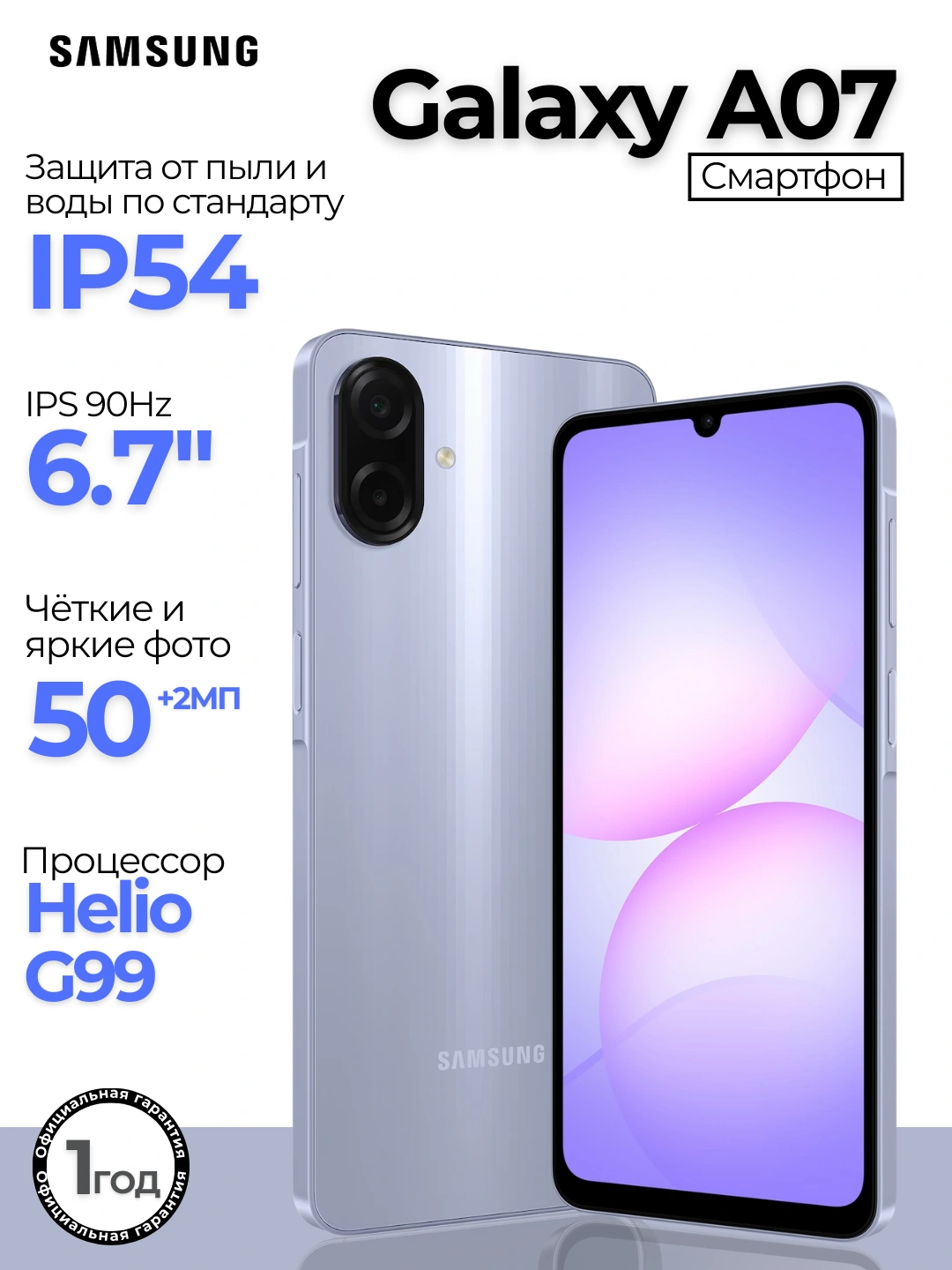 Смартфон Samsung Galaxy A07, 2 SIM, 6.7" 90Hz, 5000 мАч 25Вт, Helio G99, Камера 50МП за 1900000 сум со скидкой 81%. Uzum Market