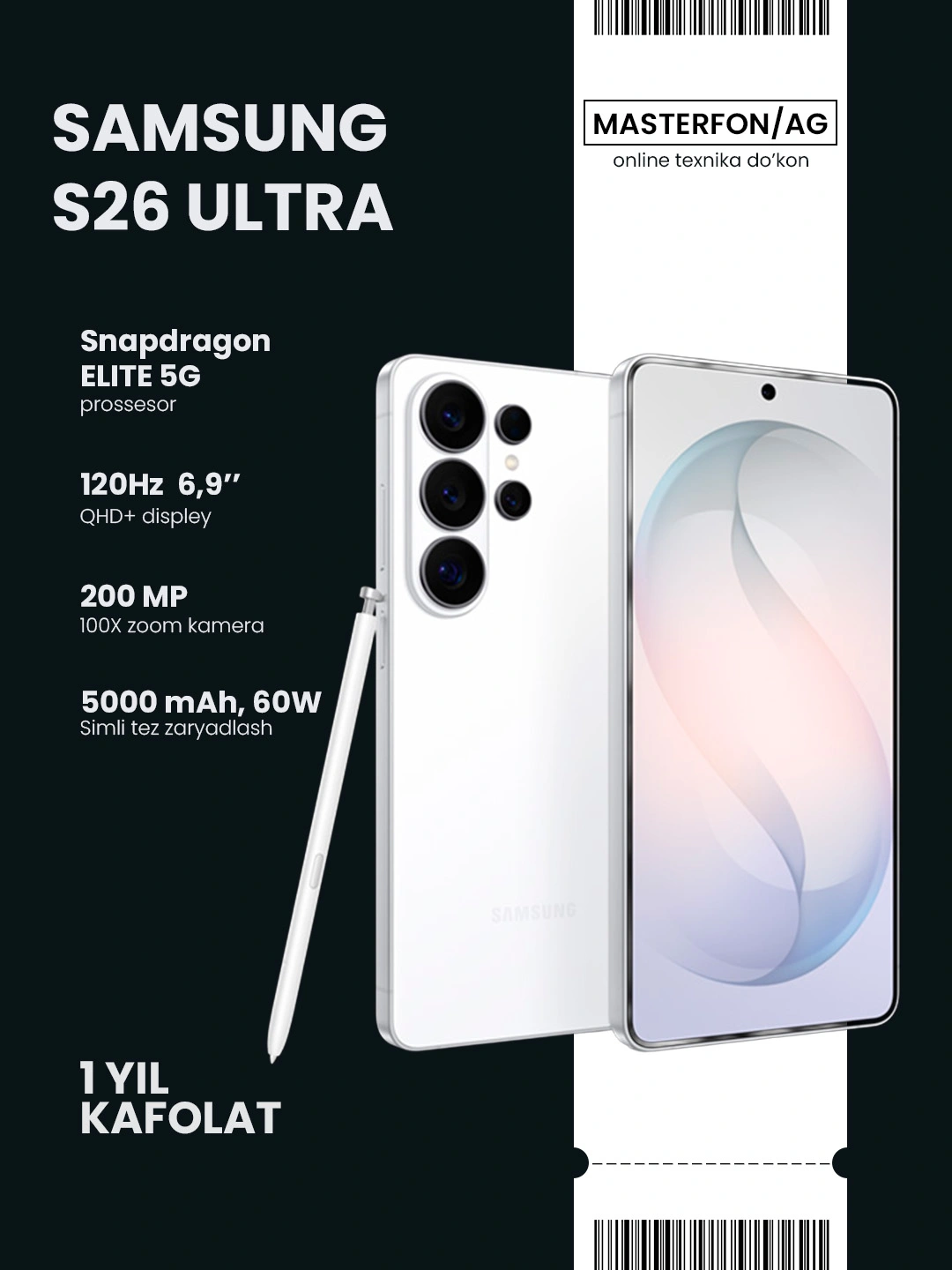 Смартфон Samsung Galaxy S26 Ultra 6,9" QHD+ AMOLED 120Гц 200МП 5000мАч Snapdragon Elite 5G за 16207000 сум со скидкой 26%. Uzum Market