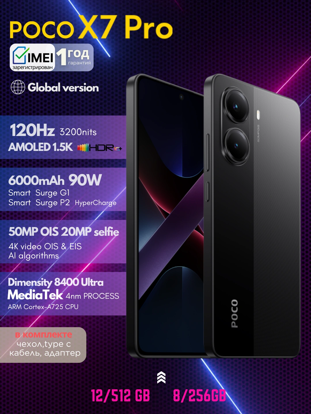 Смартфон Xiaomi Poco X7 Pro 5G, 50MP,120ФПС Pubg, 6000 мА/ч, NFC за 4959000 сум со скидкой 45%. Uzum Market