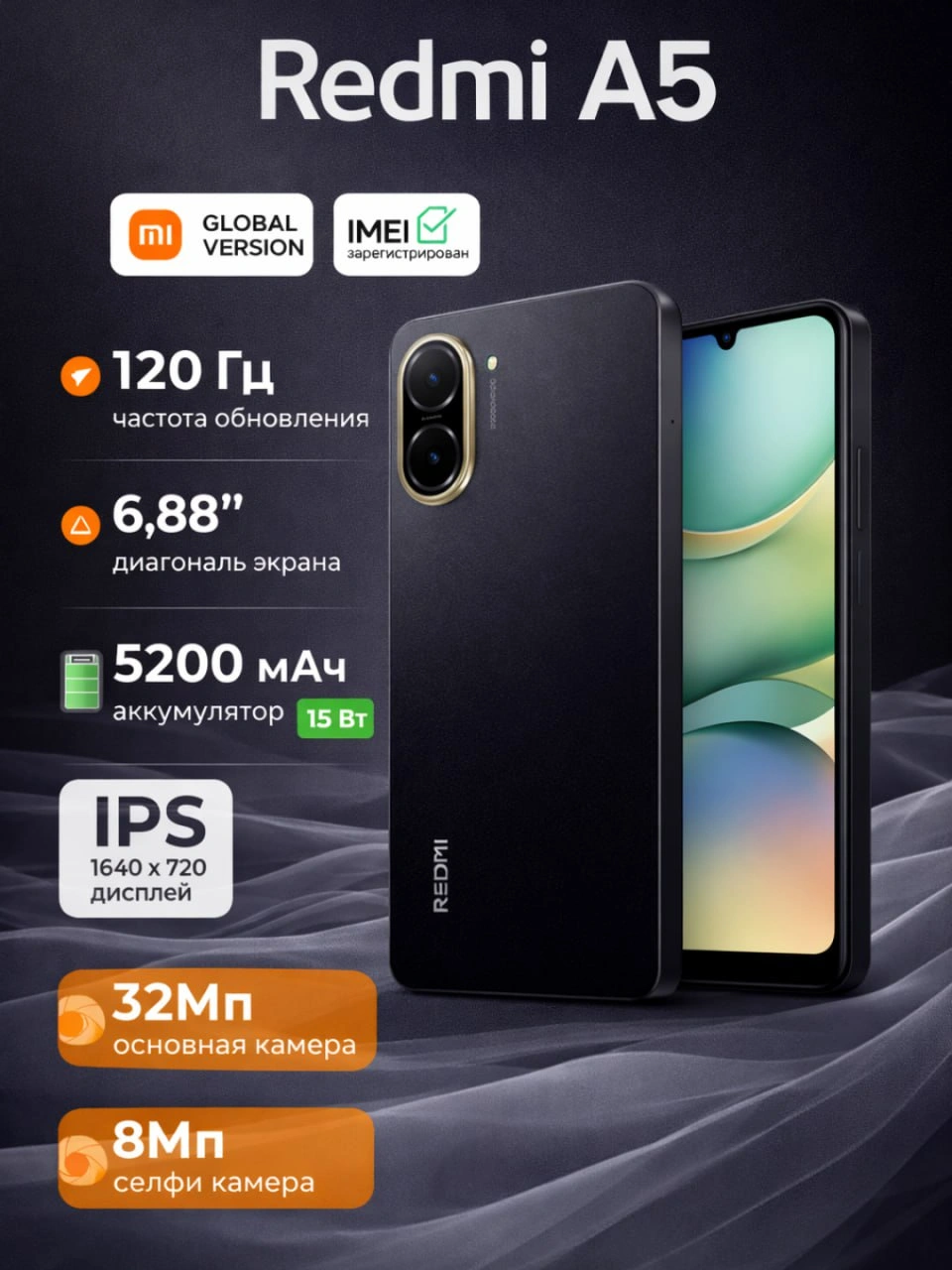 Смартфон Xiaomi Redmi A5, 6.88 IPS дисплей, 32 Мп камера, батарея 5200 мАч за 1341450 сум со скидкой 28%. Uzum Market