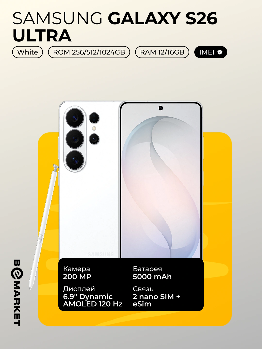 Смартфон Samsung Galaxy S26 Ultra 6,9" QHD+ AMOLED 120Гц 200МП 5000мАч Snapdragon Elite 5G за 16207000 сум со скидкой 26%. Uzum Market