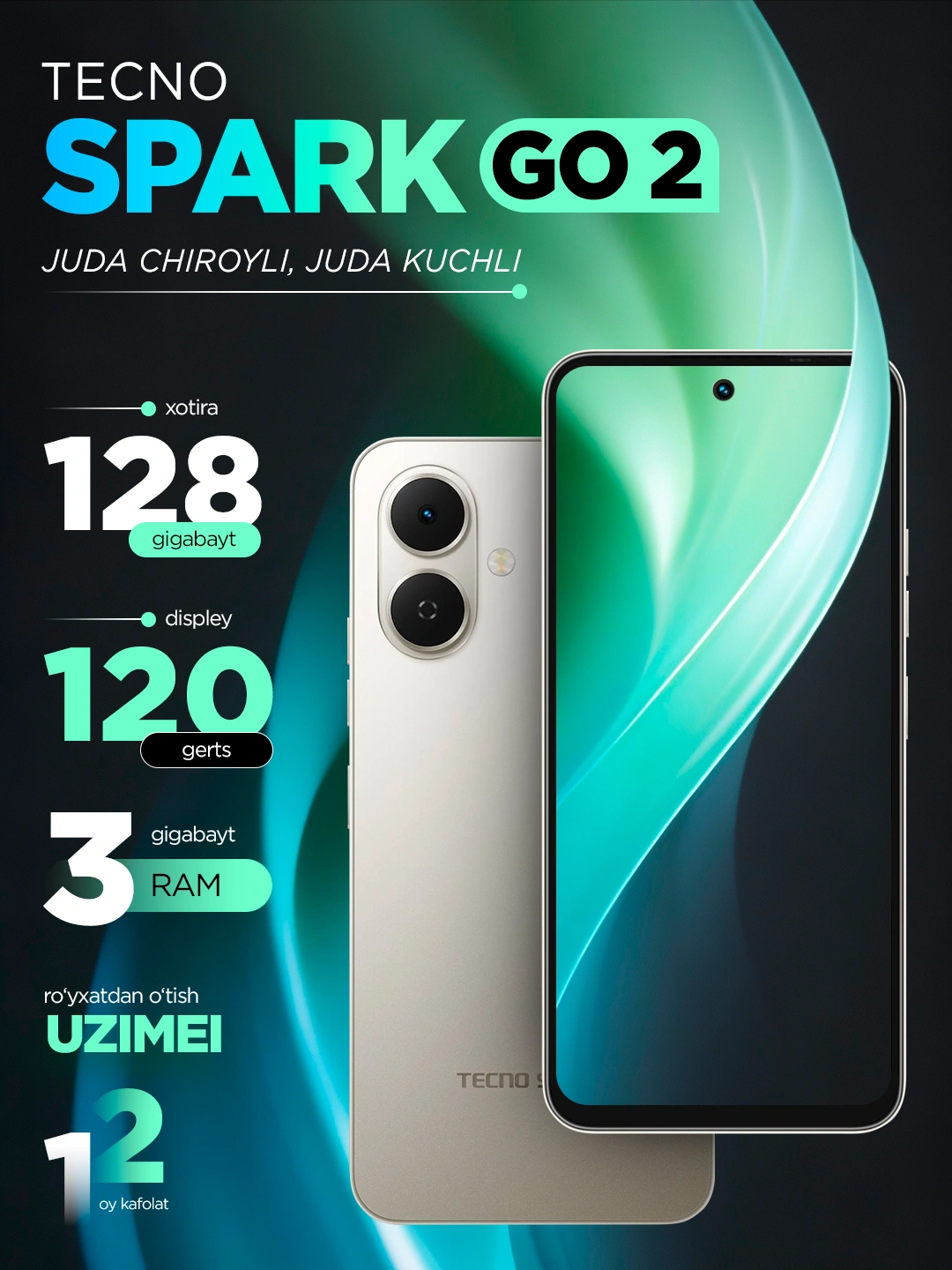 Смартфон Tecno Spark Go 2, экран 6.67″ 120 Гц, батарея 5000 mAh, Android 15 за 1053000 сум со скидкой 31%. Uzum Market